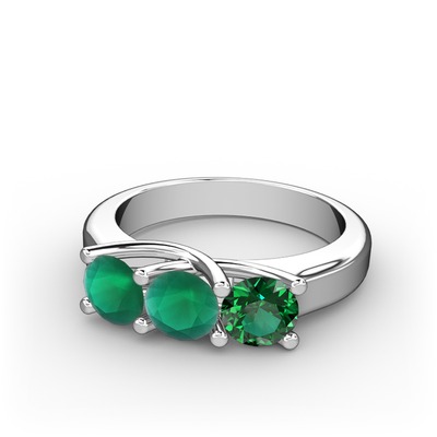 Kök zümrüt ve yeşil kuvars 8 ayar beyaz altın yüzük