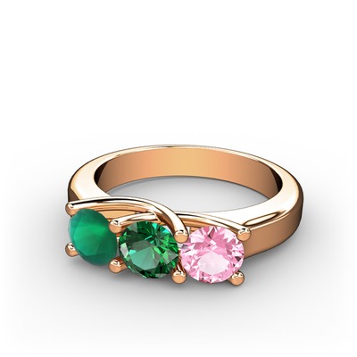 Kök zümrüt, yeşil kuvars ve pembe kuvars 925 ayar rose altın kaplama gümüş yüzük
