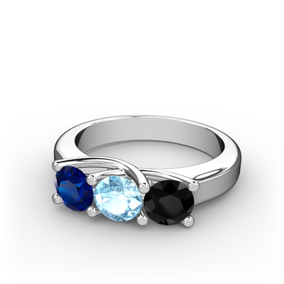 Lab safir, akuamarin ve siyah zirkon 14 ayar beyaz altın yüzük