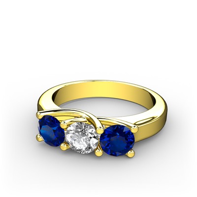 Lab safir ve beyaz zirkon 925 ayar altın kaplama gümüş yüzük