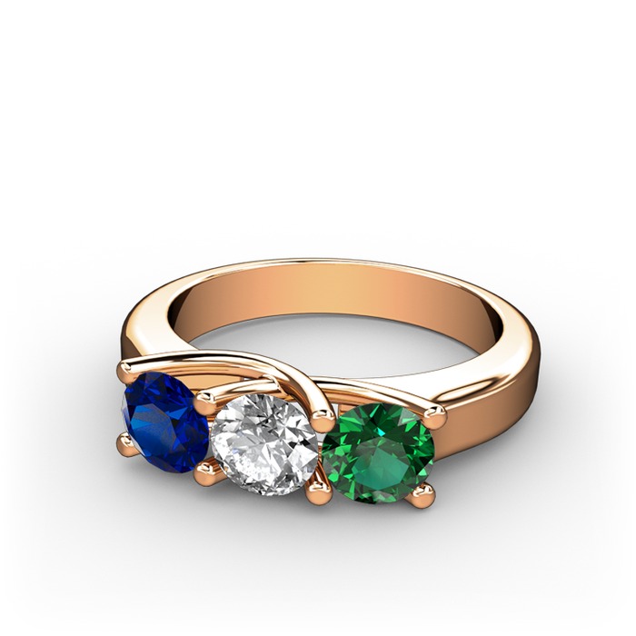 Lab safir, beyaz zirkon ve yeşil kuvars 18 ayar rose altın yüzük