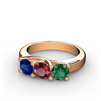Lab safir, garnet ve yeşil kuvars 925 ayar rose altın kaplama gümüş yüzük