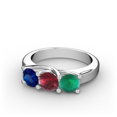 Lab safir, kök yakut ve kök zümrüt 8 ayar beyaz altın yüzük
