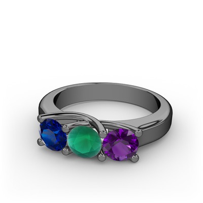 Lab safir, kök zümrüt ve ametist 925 ayar siyah rodyum kaplama gümüş yüzük