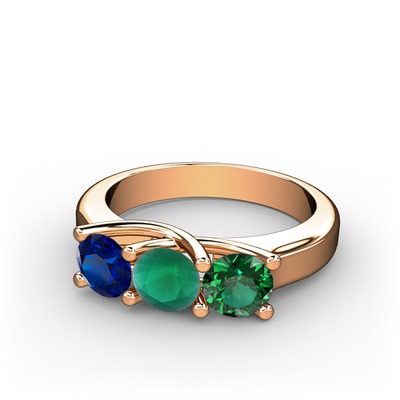 Lab safir, kök zümrüt ve yeşil kuvars 14 ayar rose altın yüzük