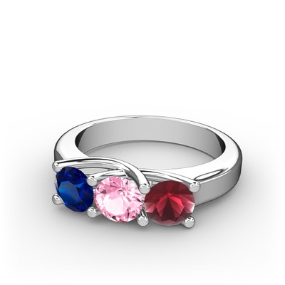 Lab safir, pembe kuvars ve kök yakut 18 ayar beyaz altın yüzük