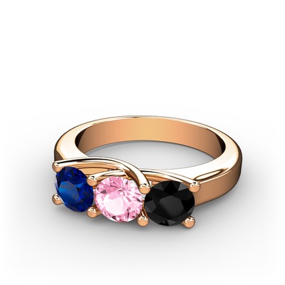 Lab safir, pembe kuvars ve siyah zirkon 18 ayar rose altın yüzük