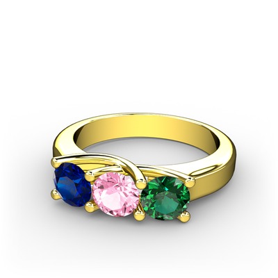 Lab safir, pembe kuvars ve yeşil kuvars 8 ayar altın yüzük