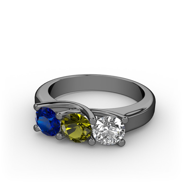 Lab safir, peridot ve beyaz zirkon 925 ayar siyah rodyum kaplama gümüş yüzük