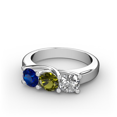 Lab safir, peridot ve pırlanta 18 ayar beyaz altın yüzük (0.5 karat)