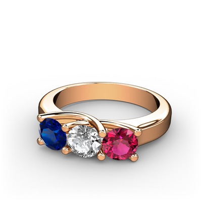 Lab safir, pırlanta ve rodolit garnet 925 ayar rose altın kaplama gümüş yüzük (0.5 karat)