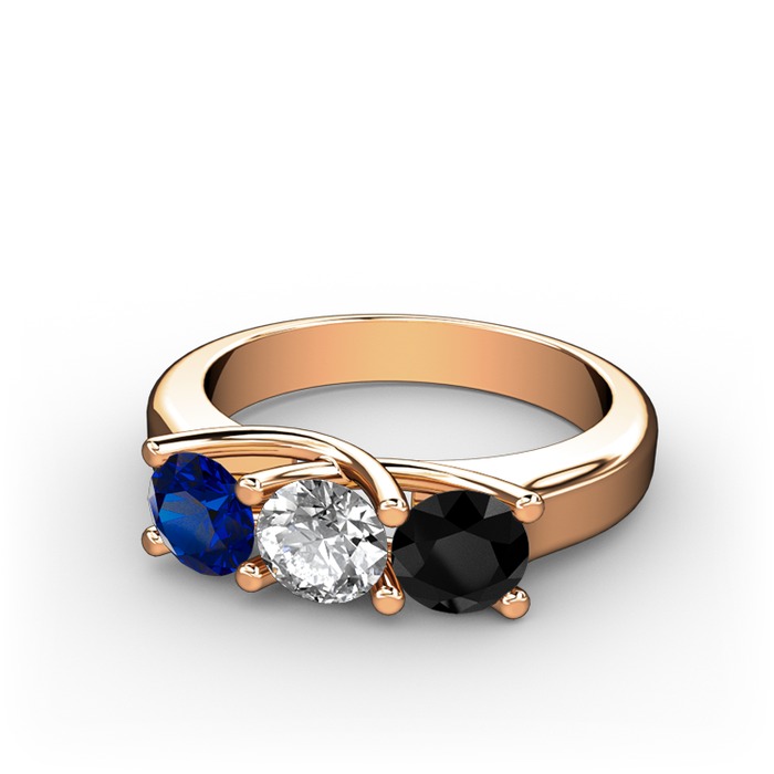 Lab safir, pırlanta ve siyah zirkon 925 ayar rose altın kaplama gümüş yüzük (0.5 karat)