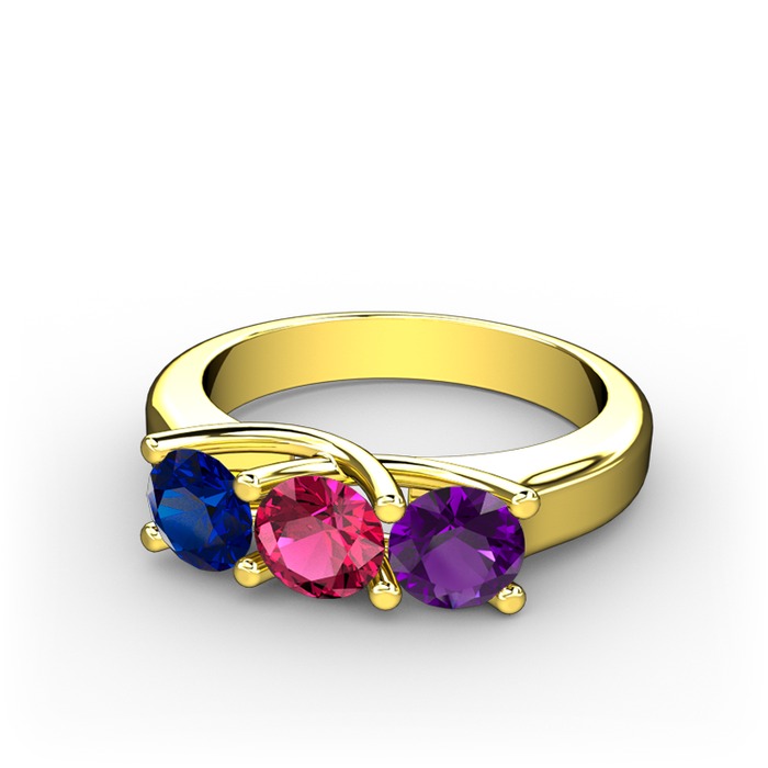 Lab safir, rodolit garnet ve ametist 14 ayar altın yüzük