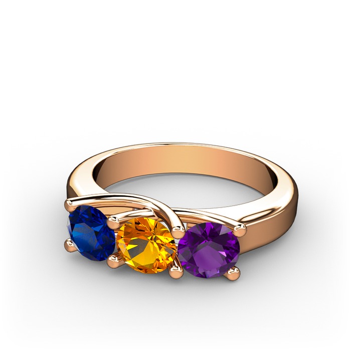Lab safir, sitrin ve ametist 8 ayar rose altın yüzük