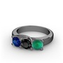 Lab safir, siyah zirkon ve kök zümrüt 925 ayar siyah rodyum kaplama gümüş yüzük