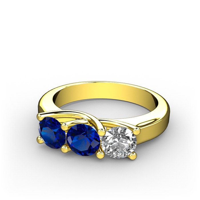 Lab safir ve swarovski 925 ayar altın kaplama gümüş yüzük