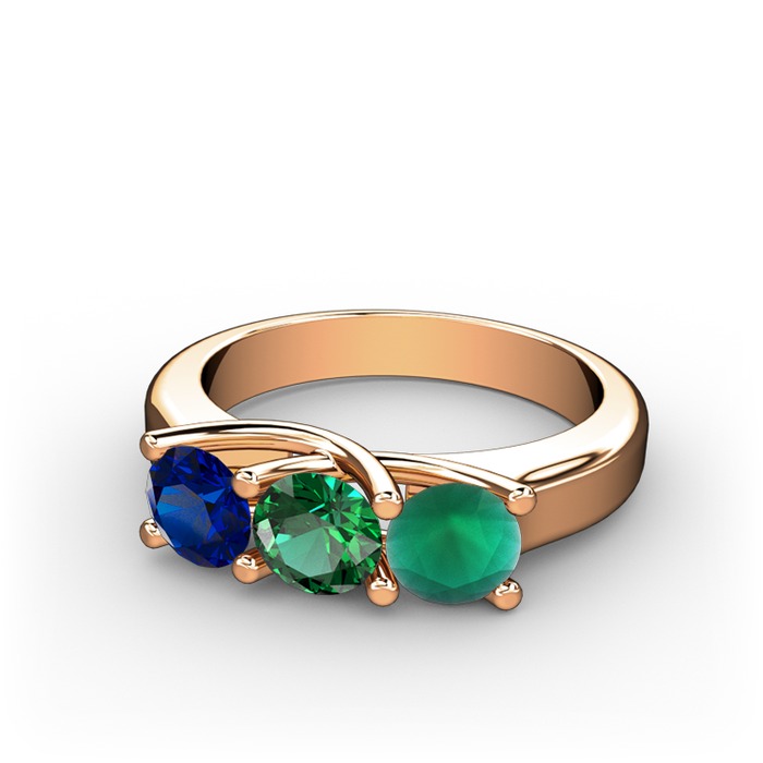 Lab safir, yeşil kuvars ve kök zümrüt 18 ayar rose altın yüzük
