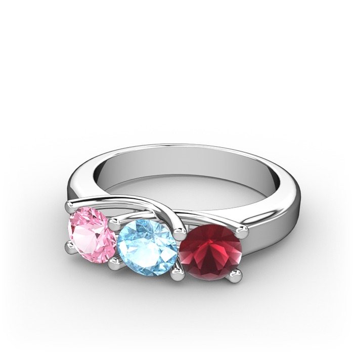 Pembe kuvars, akuamarin ve kök yakut 8 ayar beyaz altın yüzük