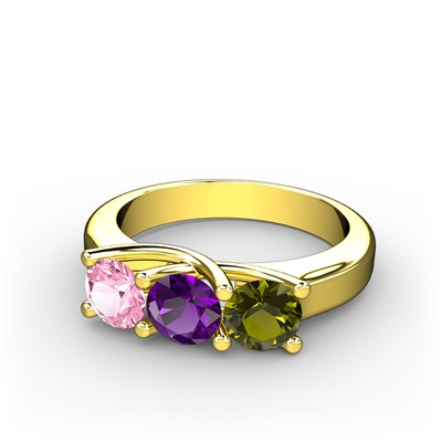 Pembe kuvars, ametist ve peridot 18 ayar altın yüzük