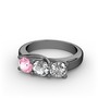 Pembe kuvars, beyaz zirkon ve pırlanta 925 ayar siyah rodyum kaplama gümüş yüzük (0.5 karat)