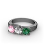 Pembe kuvars, beyaz zirkon ve yeşil kuvars 925 ayar siyah rodyum kaplama gümüş yüzük