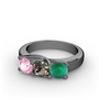 Pembe kuvars, dumanlı kuvars ve kök zümrüt 925 ayar siyah rodyum kaplama gümüş yüzük
