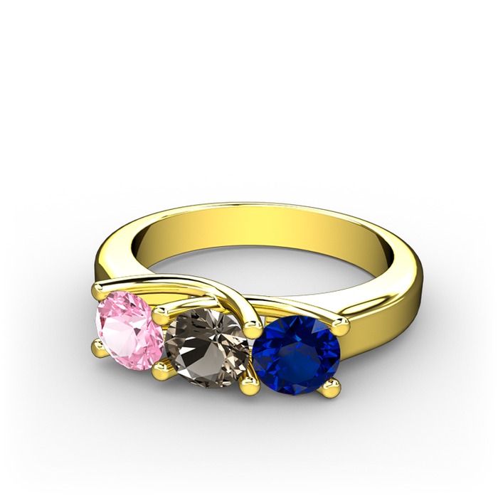 Pembe kuvars, dumanlı kuvars ve lab safir 925 ayar altın kaplama gümüş yüzük