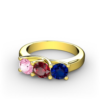 Pembe kuvars, garnet ve lab safir 18 ayar altın yüzük
