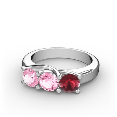 Pembe kuvars ve kök yakut 18 ayar beyaz altın yüzük