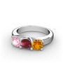 Pembe kuvars, kök yakut ve sitrin 8 ayar beyaz altın yüzük