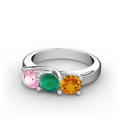 Pembe kuvars, kök zümrüt ve sitrin 14 ayar beyaz altın yüzük