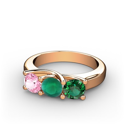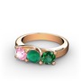 Pembe kuvars, kök zümrüt ve yeşil kuvars 14 ayar rose altın yüzük
