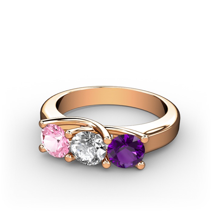 Pembe kuvars, pırlanta ve ametist 8 ayar rose altın yüzük (0.5 karat)