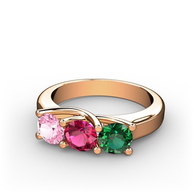Pembe kuvars, rodolit garnet ve yeşil kuvars 18 ayar rose altın yüzük