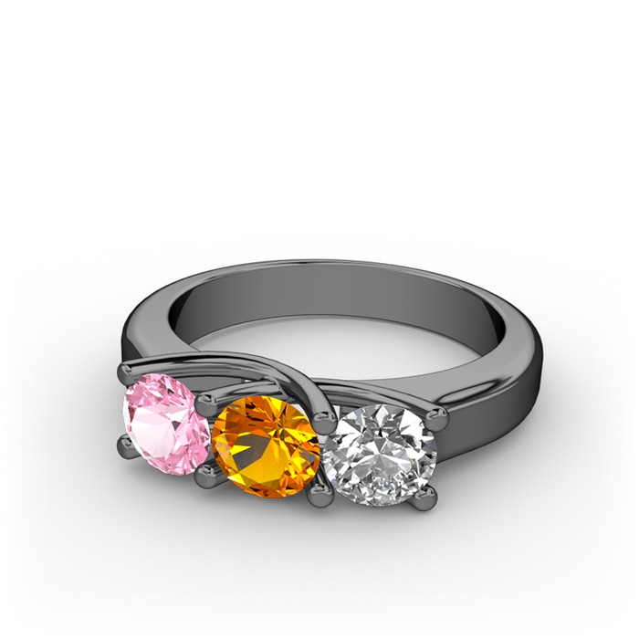 Pembe kuvars, sitrin ve beyaz zirkon 925 ayar siyah rodyum kaplama gümüş yüzük