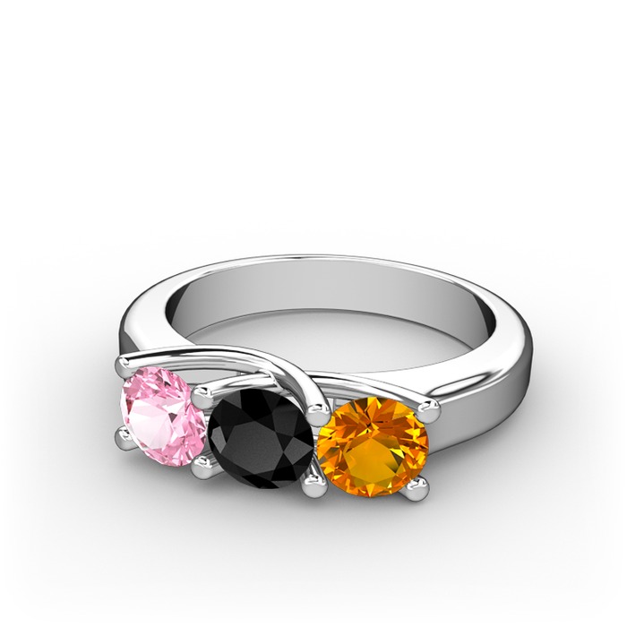 Pembe kuvars, siyah zirkon ve sitrin 18 ayar beyaz altın yüzük