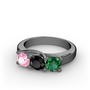 Pembe kuvars, siyah zirkon ve yeşil kuvars 925 ayar siyah rodyum kaplama gümüş yüzük