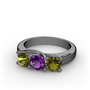 Peridot ve ametist 925 ayar siyah rodyum kaplama gümüş yüzük