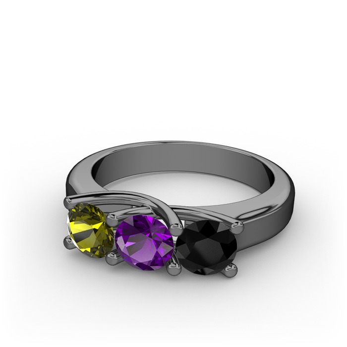 Peridot, ametist ve siyah zirkon 925 ayar siyah rodyum kaplama gümüş yüzük