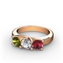 Peridot, beyaz zirkon ve kök yakut 14 ayar rose altın yüzük