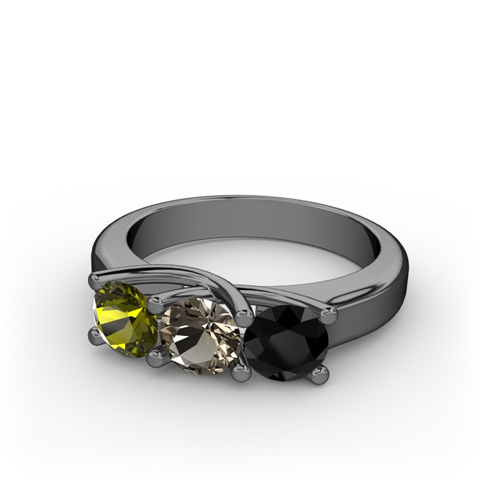 Peridot, dumanlı kuvars ve siyah zirkon 925 ayar siyah rodyum kaplama gümüş yüzük
