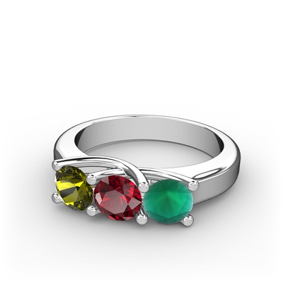 Peridot, garnet ve kök zümrüt 14 ayar beyaz altın yüzük