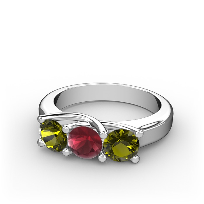 Peridot ve kök yakut 925 ayar gümüş yüzük