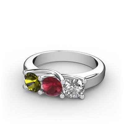 Peridot, kök yakut ve pırlanta 14 ayar beyaz altın yüzük (0.5 karat)