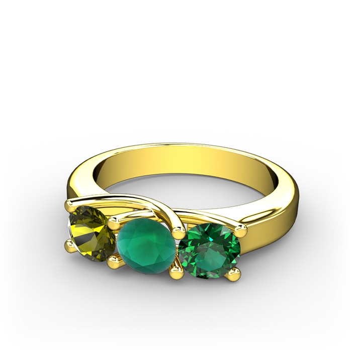 Peridot, kök zümrüt ve yeşil kuvars 925 ayar altın kaplama gümüş yüzük