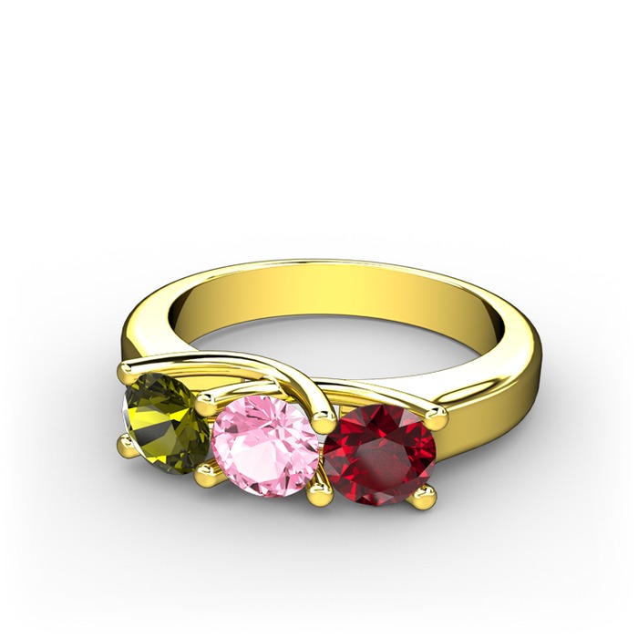 Peridot, pembe kuvars ve garnet 14 ayar altın yüzük