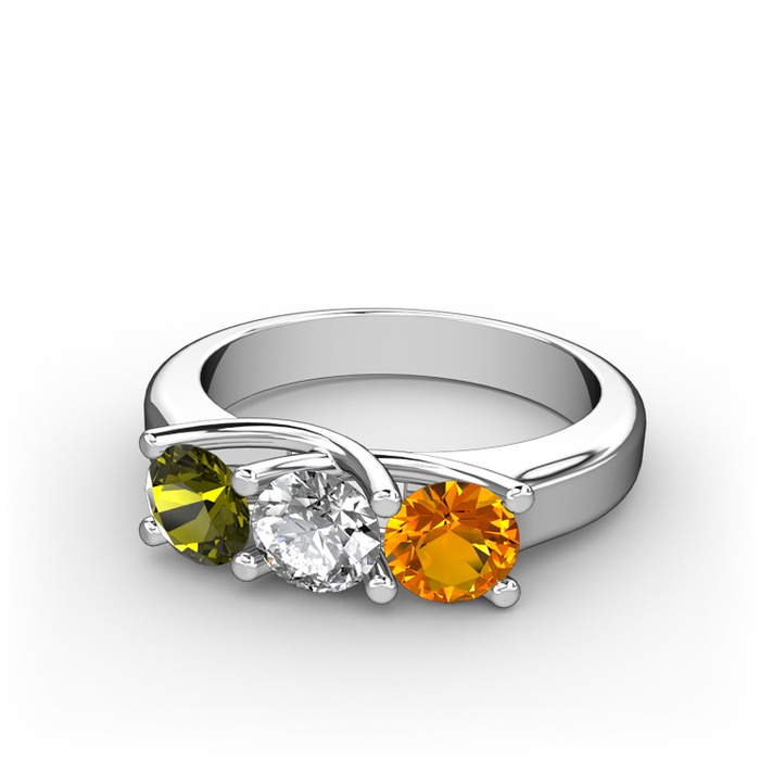 Peridot, pırlanta ve sitrin 8 ayar beyaz altın yüzük (0.5 karat)