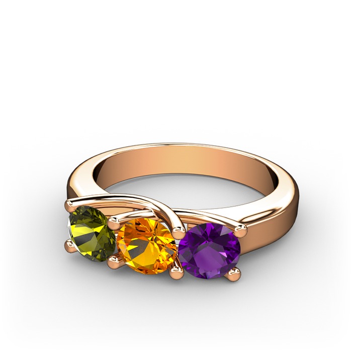 Peridot, sitrin ve ametist 8 ayar rose altın yüzük