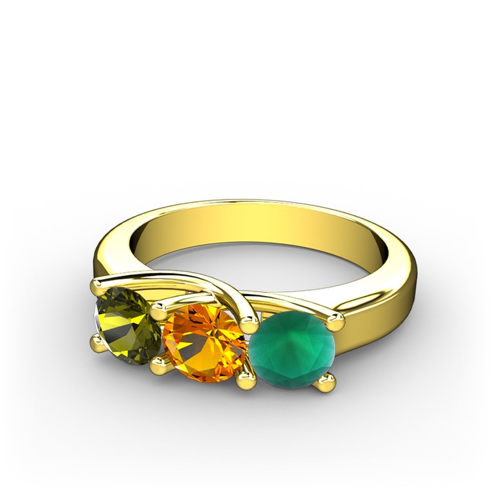 Peridot, sitrin ve kök zümrüt 925 ayar altın kaplama gümüş yüzük