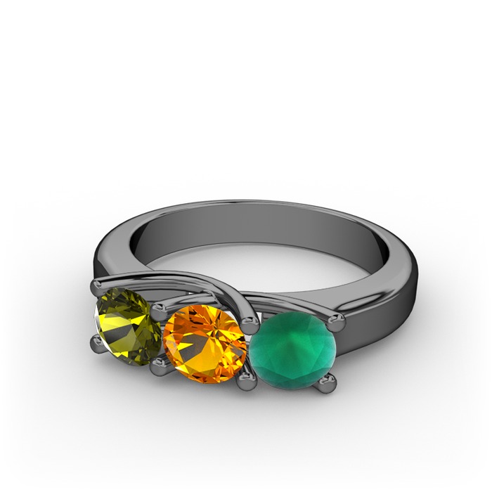 Peridot, sitrin ve kök zümrüt 925 ayar siyah rodyum kaplama gümüş yüzük